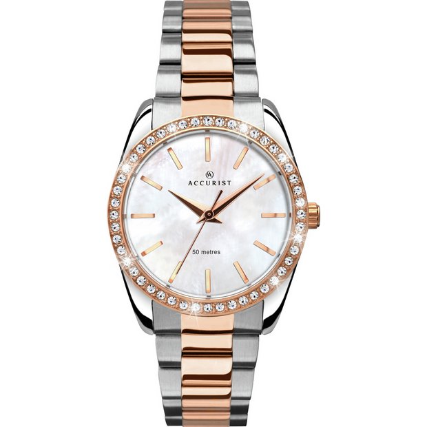 Mother of pearl dial. The accurist womens watch collections offers an extensive range of beautiful timepieces which are sure to complement any outfit. Sekonda ladies rose gold plated stone set bracelet watch 203428. Silver tone hour and minute hand.