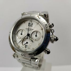 Cartier pasha chronograph luxury mens watch w31089m7. The watch features a precise swiss automatic movement and a unidirectionally rotating tachymeter bezel. Whats more these timepieces also have a date display at 5 oclock.