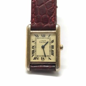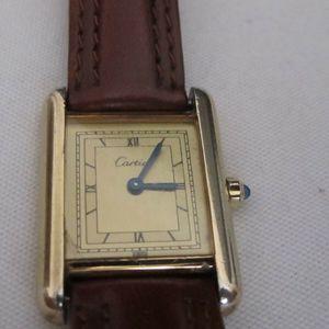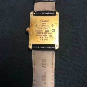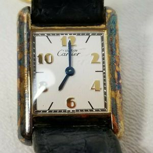 Cartier paris argent 925 watch price. 24mm vermeil yellow gold case dial. Cartier paris argent quarts 925 plaque or g 20m 750. Vintage must de cartier vermeil 925 argent plaque. Wine color dial roman numeral dial with gold hands band.