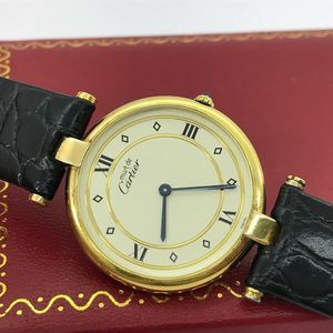 Cartier watches are known all over the world as the epitome of luxury and magnificence. Cartier must de round vermeil 925 large 30mm black dial 590003 800. Beautiful pearl white face with gemstones set for digits. We have for auction a cartier 925 argent plaque or g 20m 21 050399 ladies wrist watch.