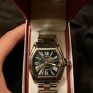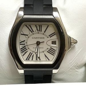 Functions without a battery. Entirely made of gold the bands are highly precious and beautiful. Solid gold bands are resistant to corrosion so these cartier watches will look like new for years to come. Cartier xl roadster stainless steel automatic watch cartier presentation pouch 40mm case fits wrist up to 7 14 stainless steel cartier xl automatic watch with oblong case and bracelet silver dial with concentric pattern under black roman numerals with additional 24 hours dial on the outside interior minute scale highlighted with luminescence.