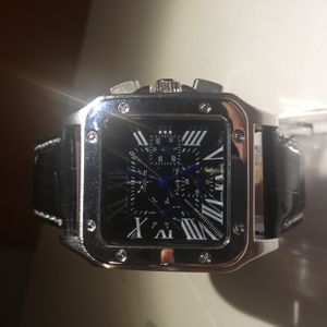 This watch is a classic timepiece reminds of a cartier santos watch.