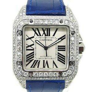 Cartier mens santos 100 xl diamond watch with original leather band with box. This is a mens cartier santos 100 xl diamond watch with a suggested retail price of 3455000. Cartier santos 100 xl iced out 15ct genuine diamonds mens watch 15999. Cartier santos 100 large model auto steel mens strap watch w20076x8.