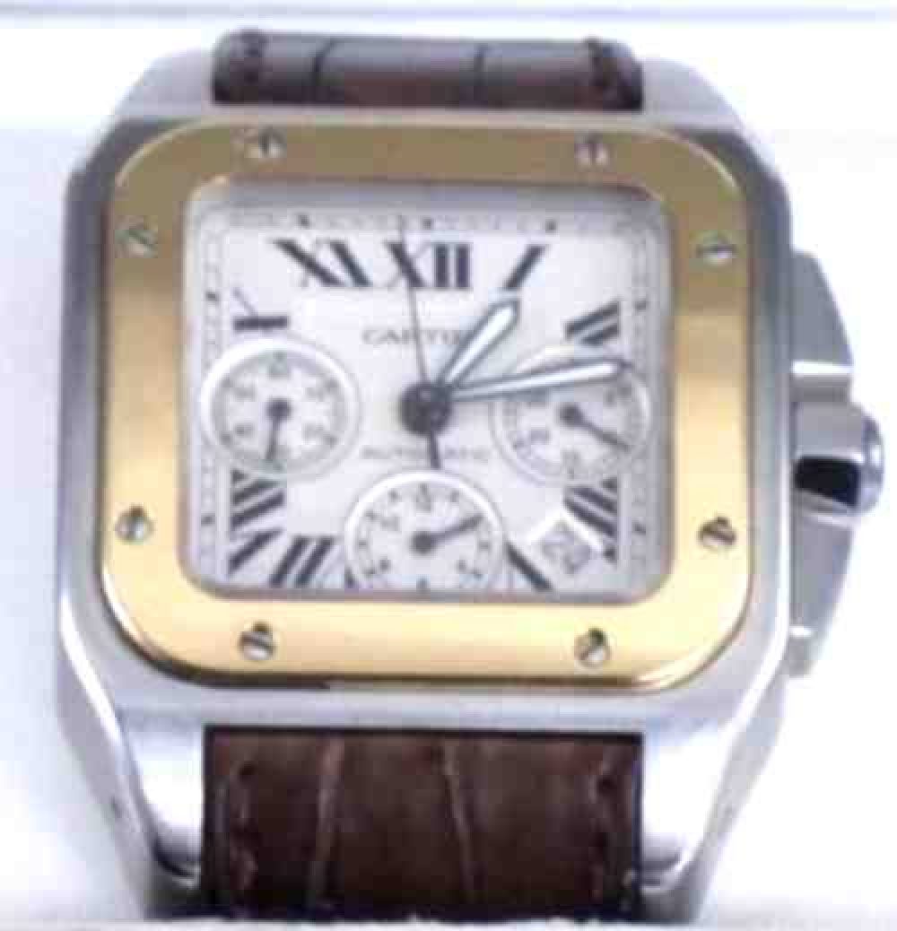 To be able to tell time while flying. Cartier santos 100 4950. Cartier santos 100 18k gold steel silver dial automatic midsize watch w20107x7.