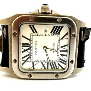 New replacement genuine leather band. Unique central t lugs come complete with the original screws that hold the strap together. Tags cartier bracelet silver. Fully working just had new battery installed.
