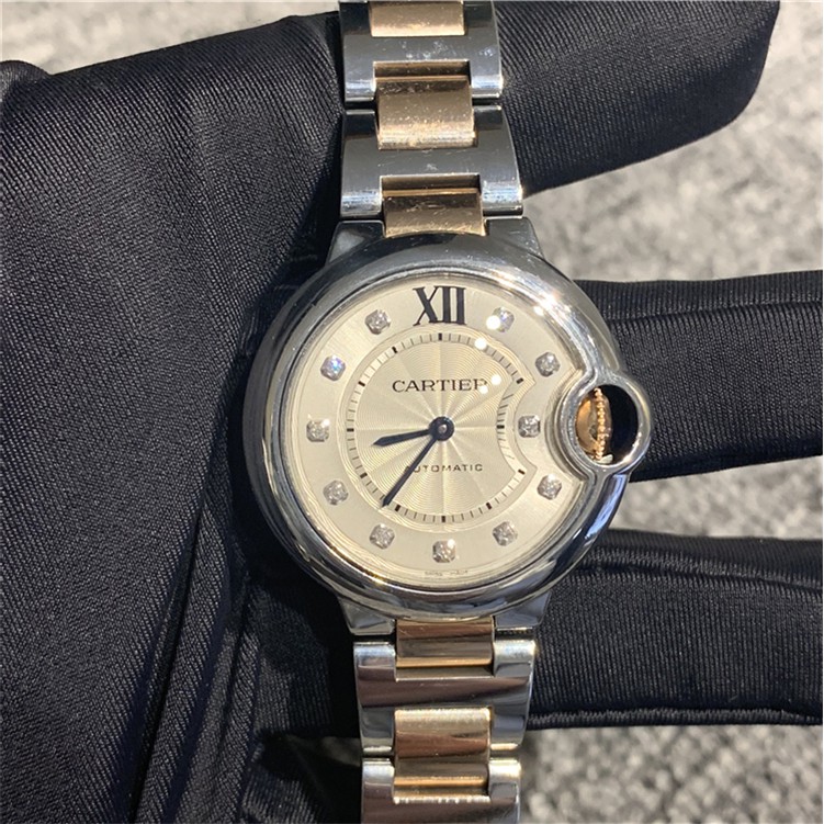Pictured above to the left of the cartier logo are an 18k common control mark and a saint bernard stamp the latter stamp denoting the watch was made in switzerland after 1995. Use a flashlight on the watch for about 30 seconds to charge it. Cartier is a brand that is well known for a flawless timepiece and if there is any flaw chances are the watch is not a genuine cartier. Also the engraving is perfect.