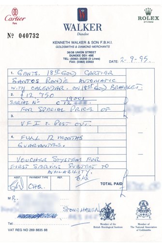 Cartier Watch Receipt