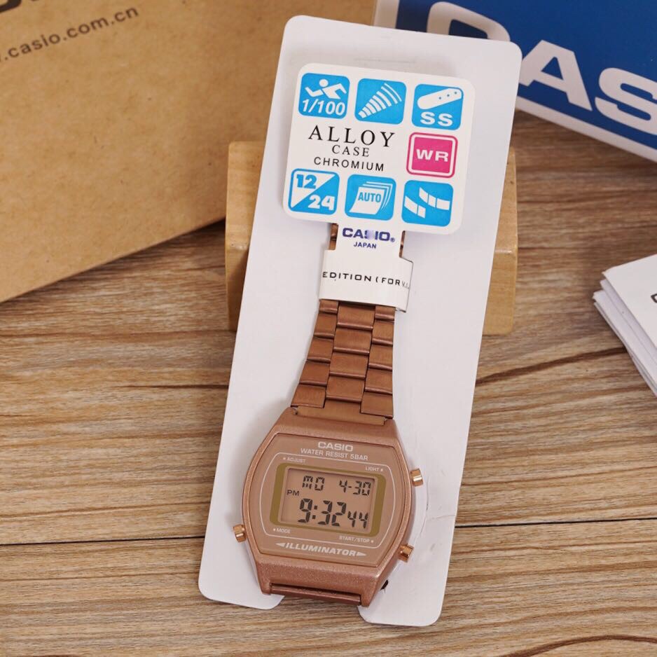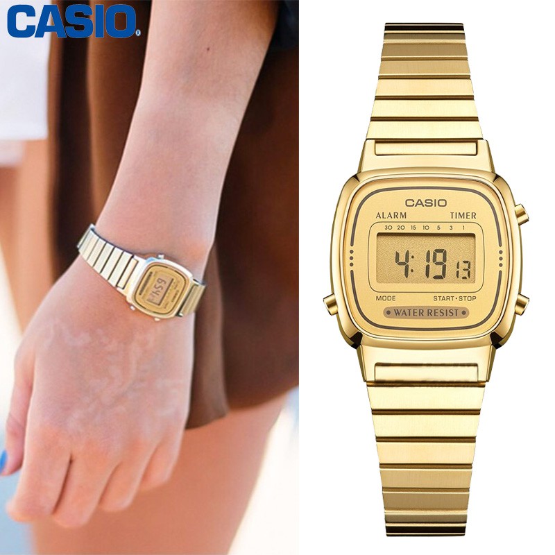 Casio ladies rose gold stainless steel bracelet watch. The crystal is acrylic the quartz movement and the digital display. Casio womens vintage la670wga 1df daily alarm digital gold tone watch. An easy to read time display format and handy perpetual calendar function ensures your time telling convenience.
