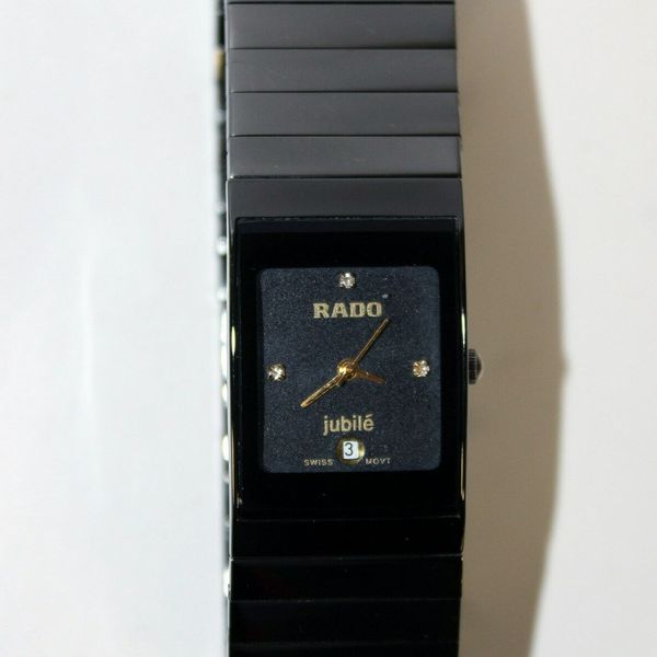 Make offer genuine ladies rado integral ceramic watch diamond rectangular black r20613712. 68 diamonds set around the outer rim. Mens swiss diamond rado true jubile black ceramic watch r27653742. Rado r55 ceramic chronograph ladies watch r28392252.