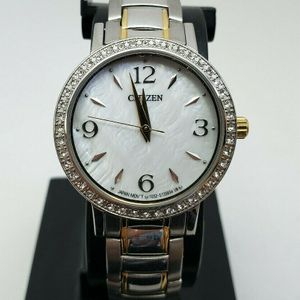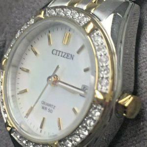 Citizen quartz ladies watch model el3044 54a. Citizen quartz ladies watch. Citizen quartz watches are excellent solutions for people who want something thats simultaneously stylish and accurate. Make offer vintage citizen quartz day date 6100 g03995 ta gn 4 s mens watch gold tone runs vintage citizen day date quartz watch brown strap luminous new 2800 7h 3m. Sophisticated in both styling and performance this watch is designed to be a comfortable and versatile everyday piece.