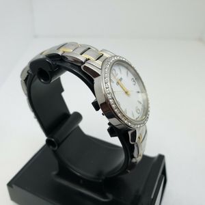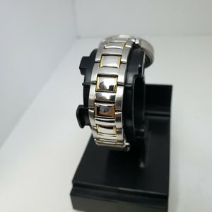 Blue dial with analogdigital display luminous hands and markers. Titanium case and watch bracelet. With strong stainless steel construction and two tone case and bracelet which decorated with beautiful. Using little power the wearer can keep accurate time for long without the need to wind the watch continually.