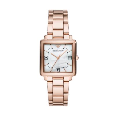 179 womens quartz watch with rose gold case and leather strap 229. Wearable while swimming in shallow water. The collection by emporio armani features the finest italian all watches for women. Fixed rose gold tone bezel.