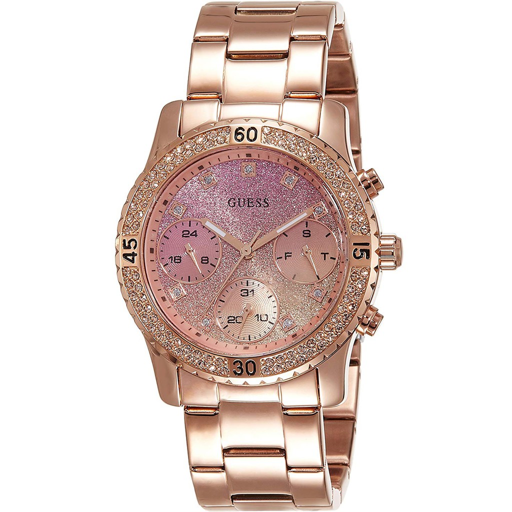 Guess watches has always been know to be a pioneer when it comes to bling aesthetic and launched its. Guess ladies rose gold designer watch rrp 239 uk warranty w0016l5 sale. Guess ladies gold watch with gold logo dial and black silicone strap. Its time you got yourself one of our ladies watches or why not purchase our of our guess watches for women for someone special we know theyll love it.