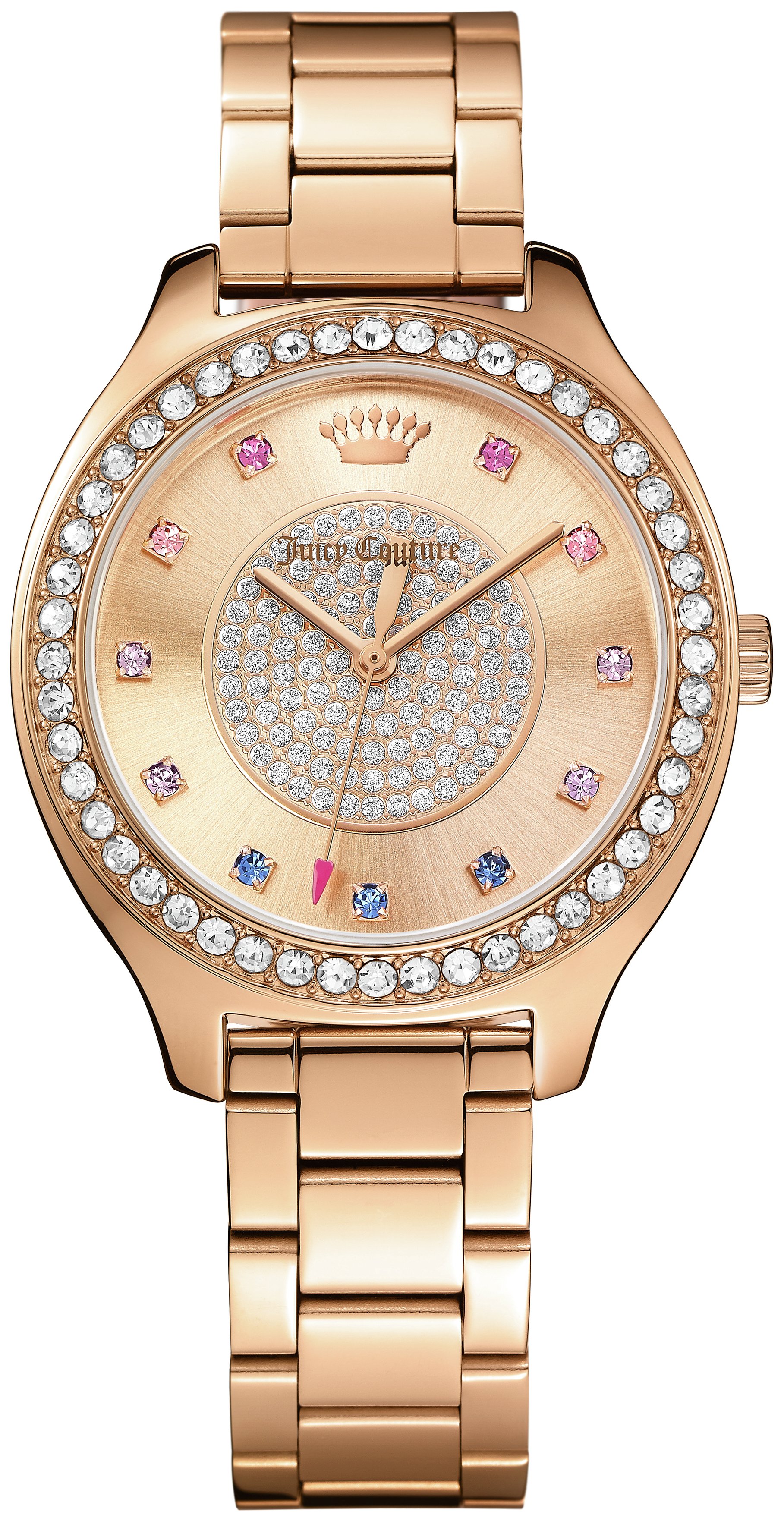 Juicy couture black label swarovski crystal ladies watch available colors. Juicy couture black label swarovski crystal ladies watch. Juicy couture womens cali analog quartz watch with stainless steel strap rose gold 17 model. Watch bracelets also make your style look ultra chicand theyre not as bulky as regular watches.