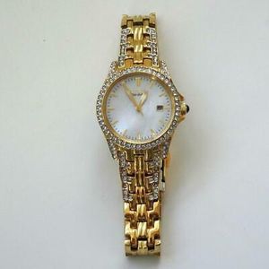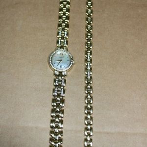 Ladies citizen watch and bracelet set. Citizen ladies gold tone bracelet stainless steel watch with bangle eu6012 58p set. Featuring our eco drive technology powered by light any light. Gold tone stainless steel case and bracelet with champagne dial features 15 second chronograph that measures up to 60 minutes 1224 hour time date and water resistant to 200 meters. Crystal set bezel and hour markers.