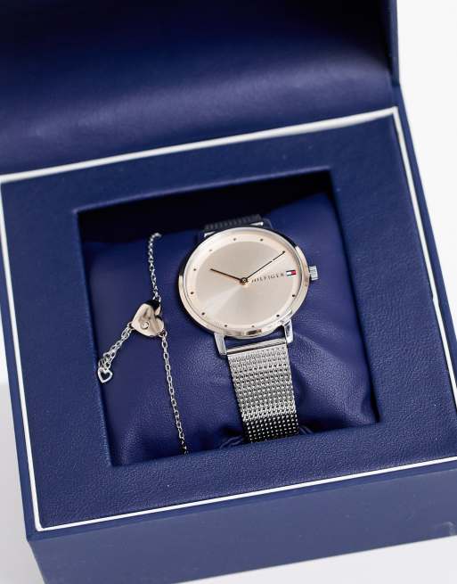 The analogue quartz watch features a two tone rose gold plated and silver coloured case and bracelet set with stunning clear stones. Skagen womens leonora stainless steel mesh bracelet watch 25mm gift set 6193 155. A two tone watch featuring both warm and cool metal is a great upscale look for everyday wear. Vintage gruen watch bracelet earring set silver marcasite crystals ladies watch women jewelry set accessories holiday gift ideas cindiestreasures.