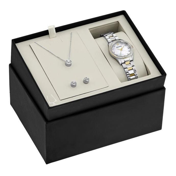 See and discover other items. Learn more about amazon prime. 48 out of 5 stars 7. Bulova womens 98x109 two tone swarvoski crystal watch box set with necklace.