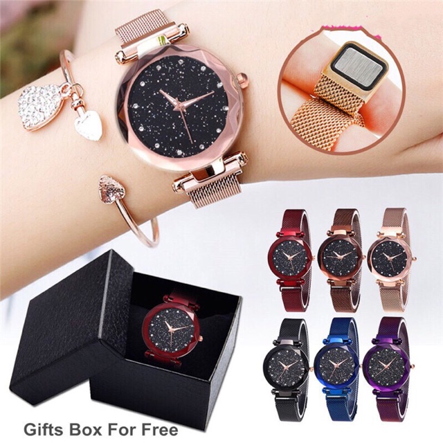 Guess ladies rose gold watch with crystal detailing and rose gold wire bracelet w0638l4. From stainless steel and ceramic watch straps to leather and fabric ones youll find the perfect fit for your wrist. Yunanwa 4 pack women ladies watches starry sky magnet buckle dial diamond cutting mesh brand straps bracelet wristwatch 37 out of 5 stars 126 2399 23. 2019 starry sky watch magnet womens watch magnetic strap ladies watch gift for her birthday gift wrist watch girlfriend gift thelittlejewelshopuk.