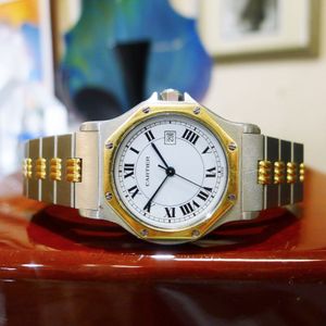 Mens cartier santos galbee automatic 28mm watch 18k yellow gold stainless steel. Cartier santos 100 xl 2656 two tone 18k gold steel automatic mens watch minty. Cartier w2609156 tank 45mm mens brown leather watch. Rotonde de cartier this classic round case shape comes to life as a platform for cartier to demonstrate its watchmaking expertise in the complicated realms.