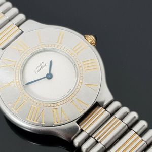 Cartier 1340 must de cartier 21 steel and gold plated quartz watch on strap. Cartier 21 must de cartier watch link gold stainless steel bi metal 16mm. Insured shipments personalized support escrow account. Ladies cartier must de cartier 21 stainless steel gold bullet 31mm quartz watch.