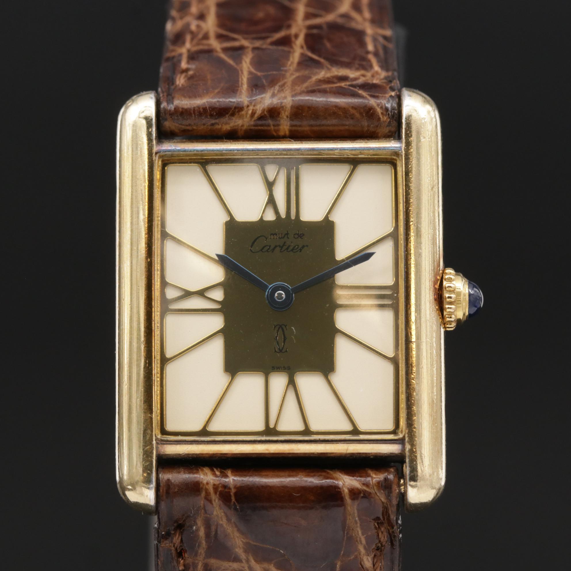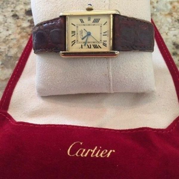 Must de cartier tank watch. Must de cartier tank paris vermeil plaque manual wind blue dial watch 205 mm 110000. Mid size cartier 18k vermeil quartz tank watch w cartier gold roman dial 166400. Authenticated and recently overhauled by the cartier workshop in new york. 925 silver gold plate 366001.