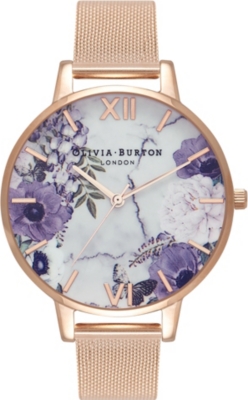 Thank you for joining the olivia burton family. So nice to meet you. When thinking of a watch that has vintage vibes but a modern aesthetic people instantly think of olivia burton. Olivia burton bejewelled florals ionic rose goldplated steel womens watch ob16bf27 hk 119000 olivia burton glitter dial grey lilac womens watch ob16gd45.