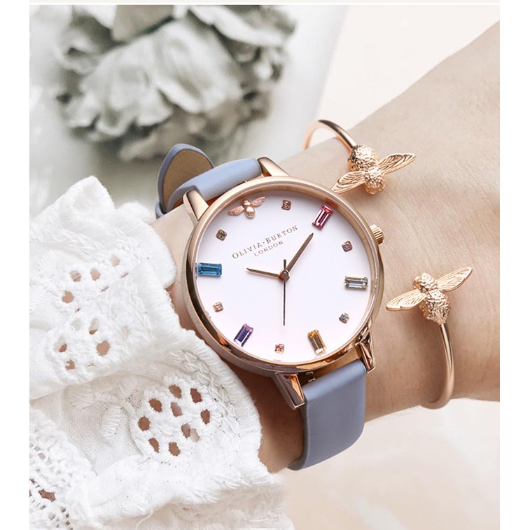 Home watches shop by collection. Finished with a sweet bee detail. Thank you for joining the olivia burton family. This delicate mini dial may be small but look closely and it packs a colorful punch delicate antique style etching around the 23mm dial gives subtle texture while matte baton markers are a playful nod to the rainbow.