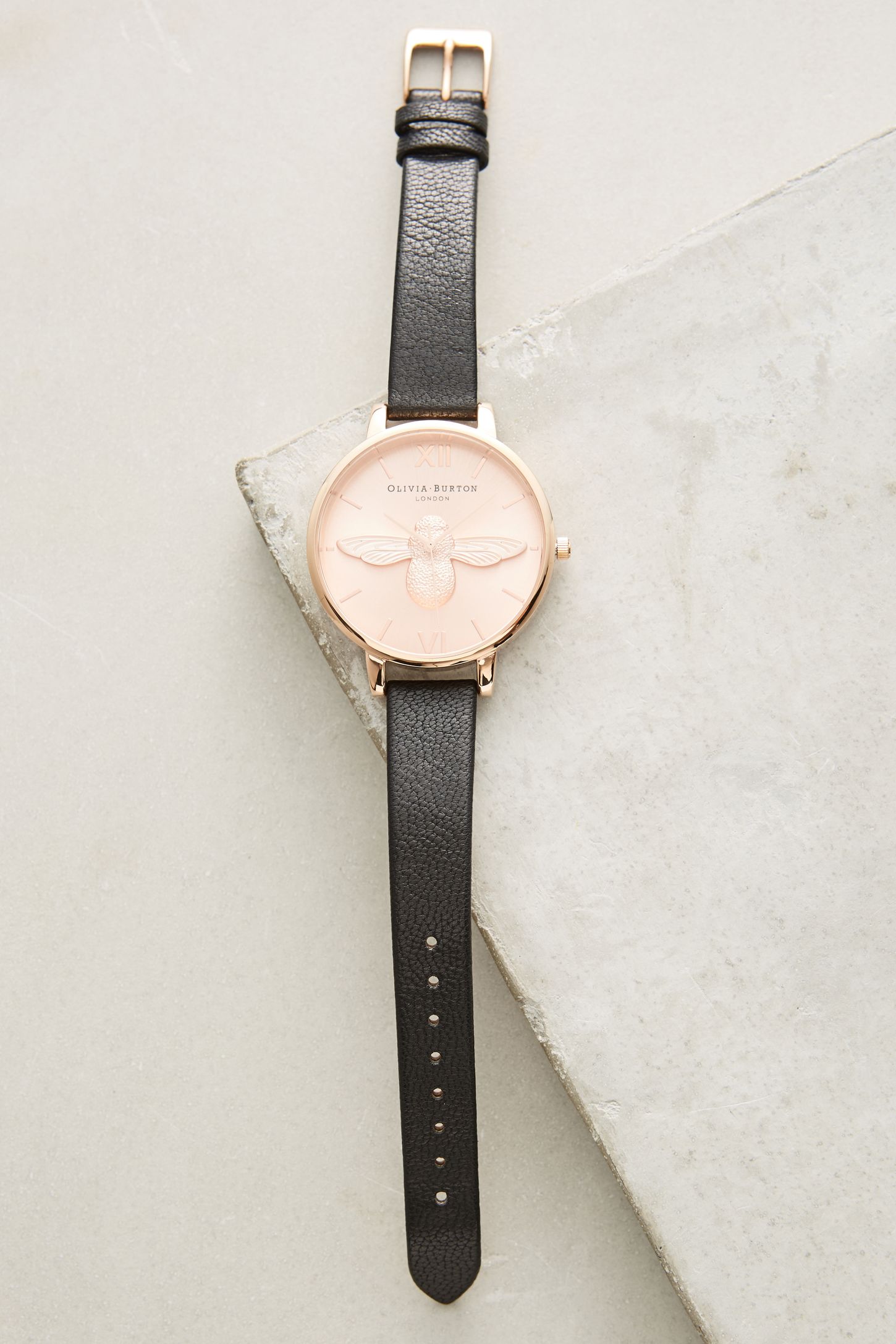 Designed in london the brands collections combine vintage and the latest fashion trendsexpect pretty prints conversational pieces and extraordinary attention to detail. Home watches shop all watches. Olivia burton busy bee black rose gold watch total. Black case light brown leather watch.