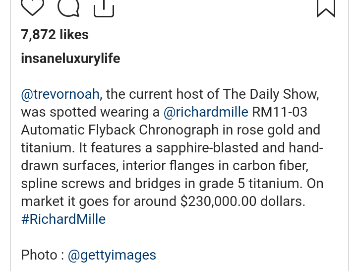 Trevor Noah Flaunts R4 5m Watch