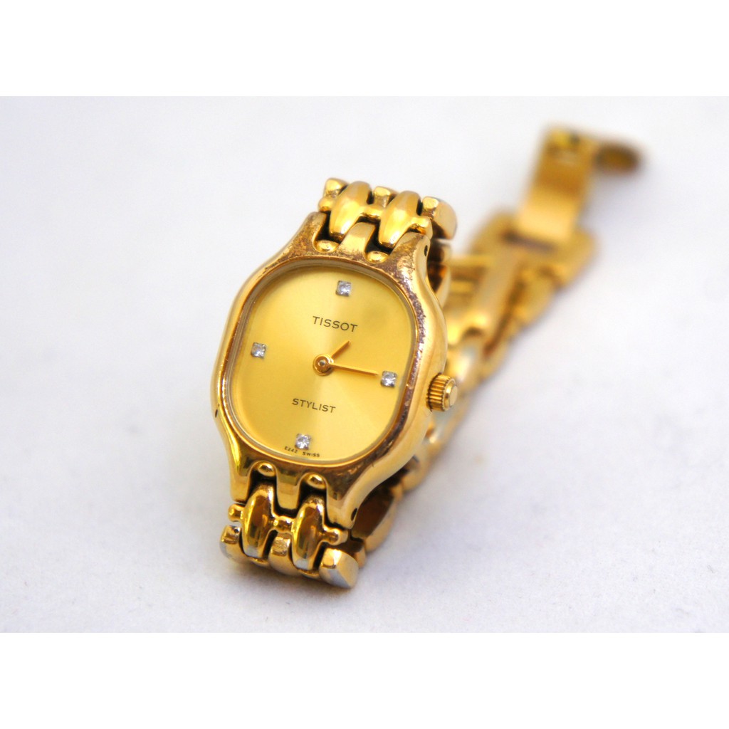 Tissot uses 18 carat gold 75 pure gold in the manufacturing of its watch cases and bracelets. Vintage tissot stylist ladies watch. Swiss t made on oval face. Tissot stylist vintage old stock never used.