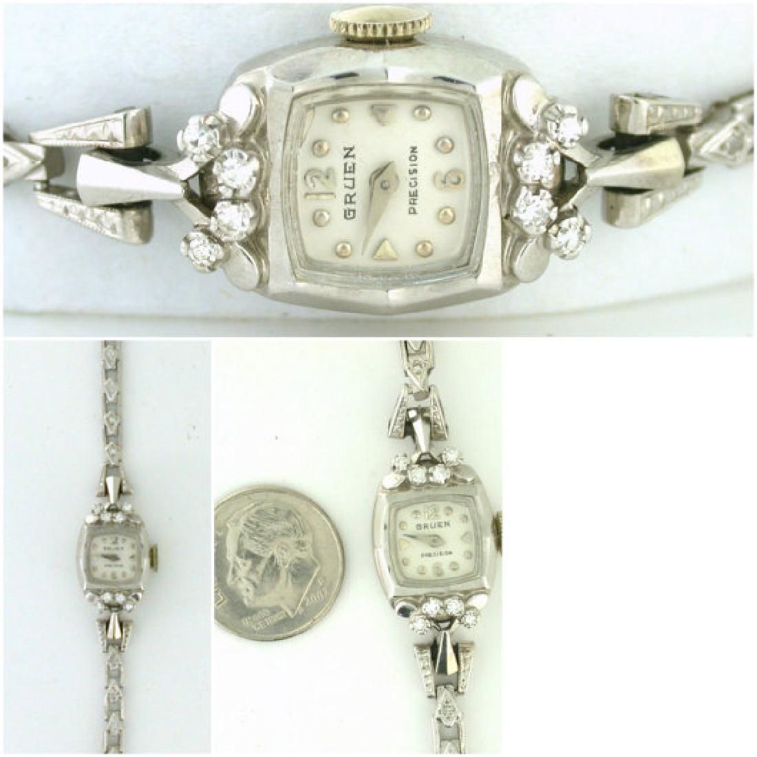 Vintage croton 14k white gold 24 diamonds ladies watch manuel wind 135 grams 55000. Make offer vintage gruen 17jewels swiss ladies mechanical windup wrist watch nos20233m gruen watch ladies c1920s white gold gf engraved art deco runs 5999. A 0000 1945. Vintage watches precision by gruen diamond quartz timex lot stretch band lot.