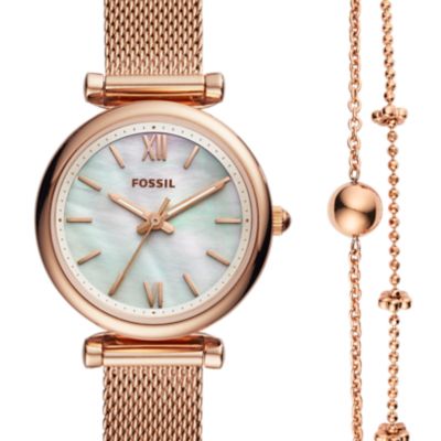 Womens portia rose gold tone stainless steel bracelet watch 37mm gift set limited time special 29500 sale 17700. From shop totheperfect 895 free shipping favorite add to classic and elegant watch for women and a leather bracelet that also can be used as a band for the watch. Fossil ladies rose gold bracelet watch es3546. Get set for ladies watches and bracelet sets at argos.