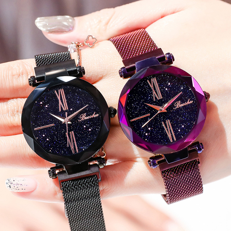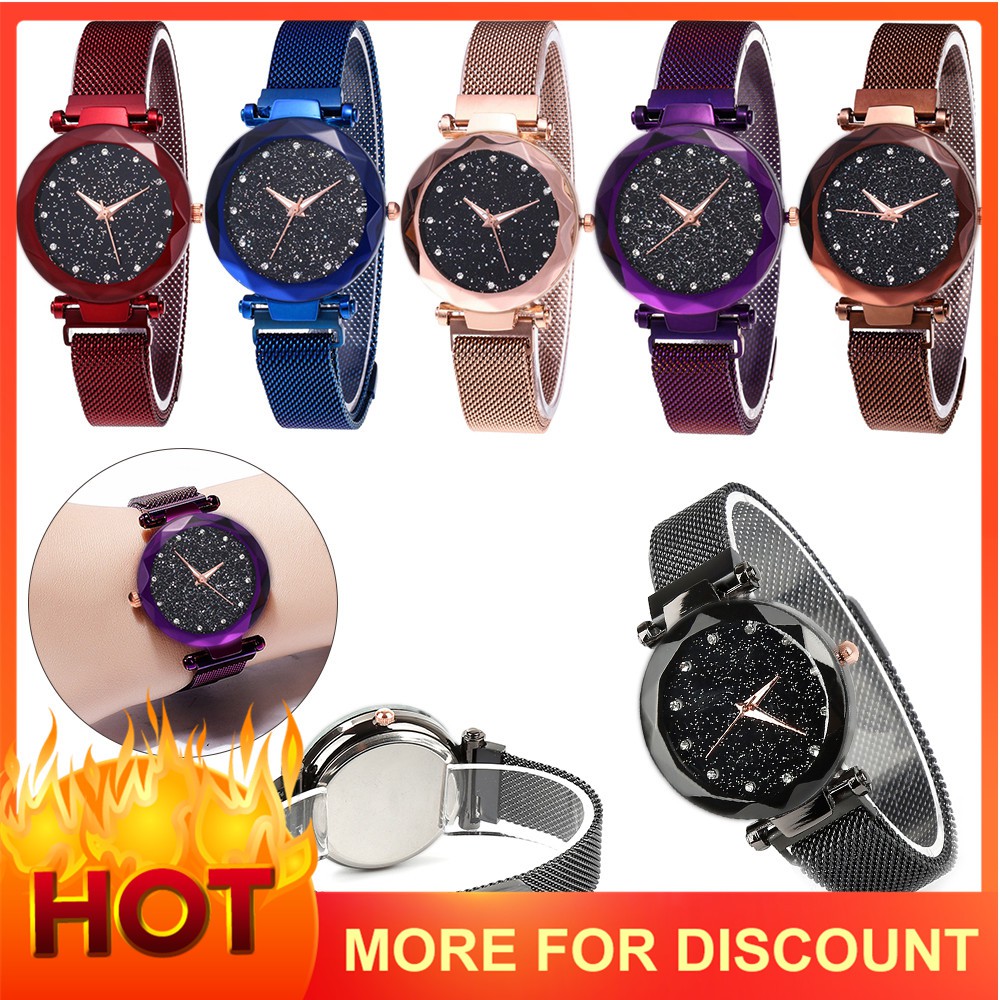 Women starry sky watch waterproof magnet luxury stainless steel band watch gift.