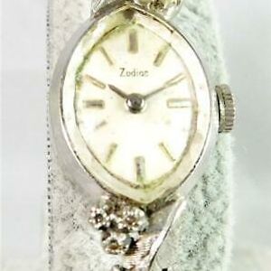 Vintage diamond 14k white gold zodiac swiss estate watch 50 ct.